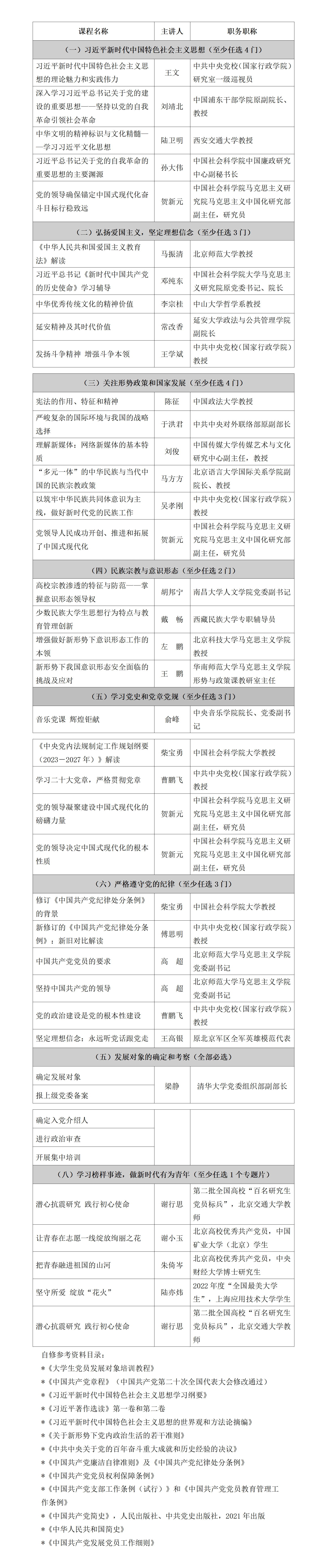 50党员发展对象培训必修课程列表