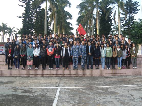 2013年12月22日下午,理学院组织党校第32期发展对象及党支部学生骨干,共90余人赴共建部队开展学习考察与社会实践活动。活动伊始,校外辅导员官兵为同学们做了《人民海军的发展成就》和《南海局势分析》的辅导报告。然后,在部队官兵的带领下,师生们参观了部队的荣誉室和内务设置,观摩了军事训练,并就当前时事热点问题与官兵进行了深入的交流。通过这次社会实践活动,同学们感悟到了军人的艰苦朴素和纪律严明的优良品质,增强了海洋国土意识和国防危机意识,坚定了入党报效祖国信仰。