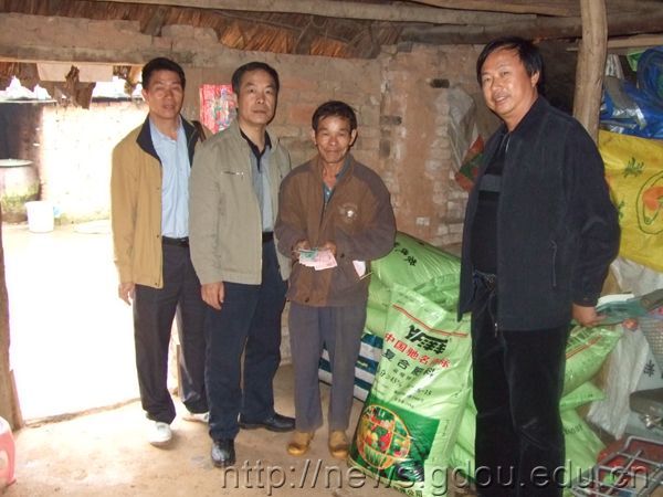为深入学习实践科学发展观,认真贯彻省、市和学校党委12月8日扶贫工作的会议精神,12月15日,学院党委书记莫钜劲、常务副院长张兵、副院长徐杰、办公室主任齐昊、驻村干部冯罗养及帮扶责任人一行再次深入雷州市纪家镇南塘村检查扶贫项目进展情况,并给每个帮扶户送上了慰问金等。