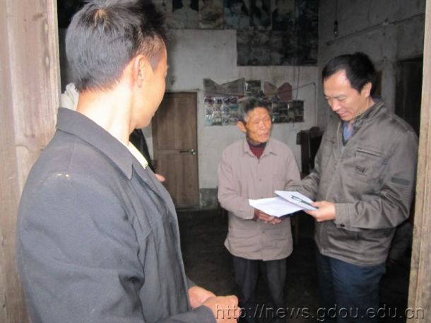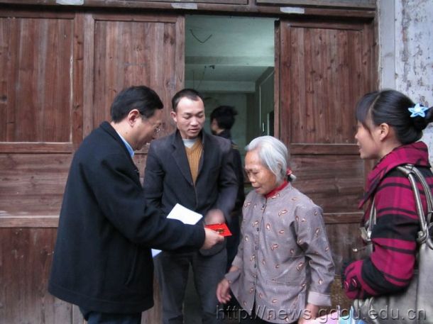 12月12日,在水槽村村干部孔金宏的带领下,简纪常等一行10人冒雨逐户到结对帮扶贫困户家中拜访并送上慰问金,了解已经启动的扶贫开发项目的进展情况,目前还存在着哪些困难,商讨确定明年的具体帮扶措施。各结对帮扶贫困户扶贫开发项目进展顺利,取得良好效果。他们都有信心通过学院的支持和自己的努力,有望在计划时间内达到脱贫。简纪常表示将加大扶持的力度,使各结对帮扶贫困户早日脱贫,走上致富之路。
