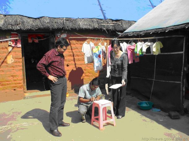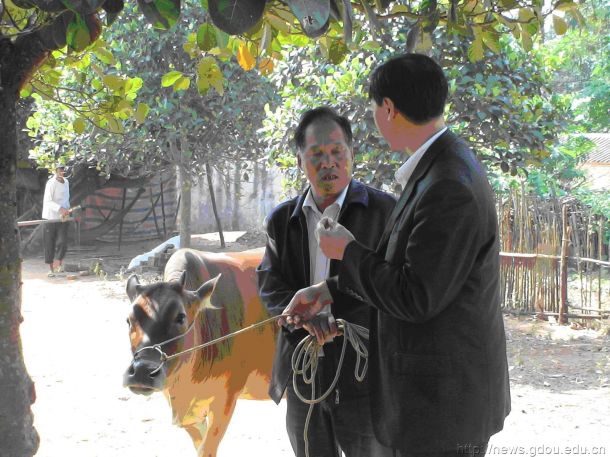 11月3日,在学校扶贫开发驻村工作组组长郑旁生、组员邓洪带领下,财务处、教务处及科技处一行深入雷州市纪家镇湾仔村帮扶结对的贫困户家,给贫困户送上慰问品,与村联系干部一起详细了解各帮扶贫困户家庭情况,商讨脱贫措施,签订帮扶协议,根据与贫困户协商的帮扶项目要求,分别为贫困户送去了“希望牛” ,扶贫工作进入实质性阶段。