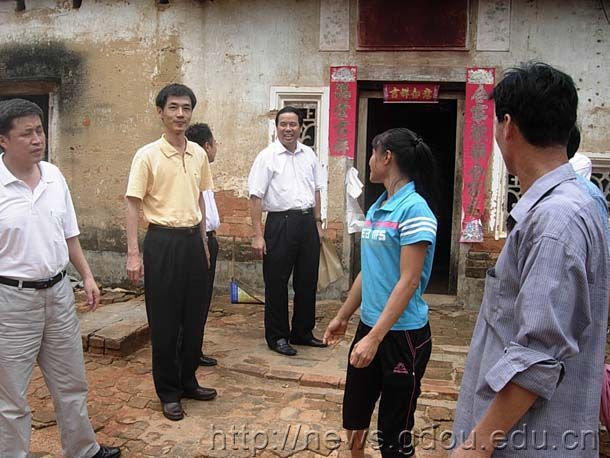 7月17日,学院党政领导带领各系主任、实验中心主任、院办主任及各教工党支部负责人冒着台风雨到对口扶贫户所在地——雷州市纪家镇南塘村委刺仔塘村调研。各负责人分别到对口扶贫户家中与他们亲切交谈,认真了解情况,倾听他们的想法,交流意见,尽快帮助他们科学规划脱贫方案。