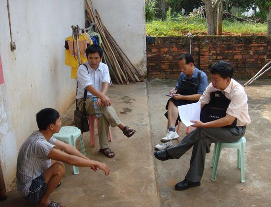 调研组在南塘村干部的带领下,前往蔡妃长(1)、蔡妃青、蔡妃明、蔡妃长(2)四户帮扶的家中,详细了解各户家庭现况及困难的主要原因,并针对各家的实际情况商讨脱贫的路子。经了解及商讨,达成了扶贫开发计划:一是为蔡妃长(1)的大儿子联系湛江技校就读,二年后可以到工厂打工,增加家庭收入;二是为他们四户购买小牛,并提供饲养技术指导;三是鼓励他们利用现有的条件发展多种经济,为他们提供技术指导。