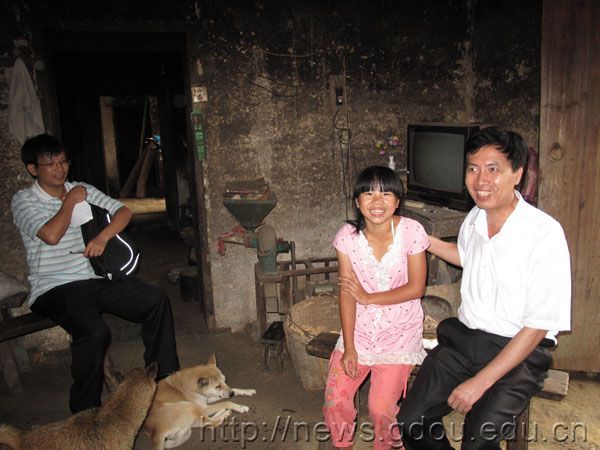 张志强主任、曾庆新副部长与贫困生毛海平促膝交谈,并给了她1000元助学金,笑容和笑声使这个父老女幼的困难家庭蓬荜生辉