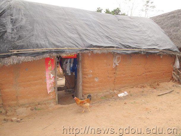 盖着塑料布的茅草屋。这样的房子,在南王村(南塘自然村之一)随处可见。记者印象中,30年前北方农村的房子,也比这个像样些。