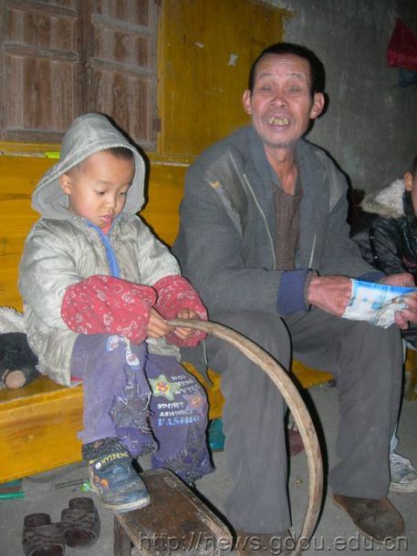 屋里没有玩具,唯见大人用竹片帮小孩制作的“呼拉圈”
