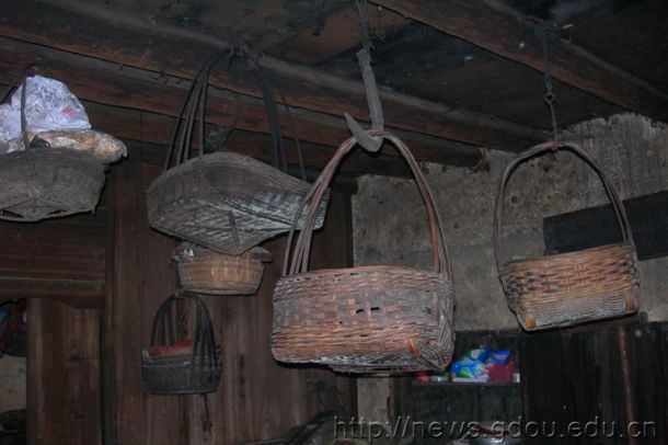 农户没有城里常见的储物柜,代之的只是自编的吊篮